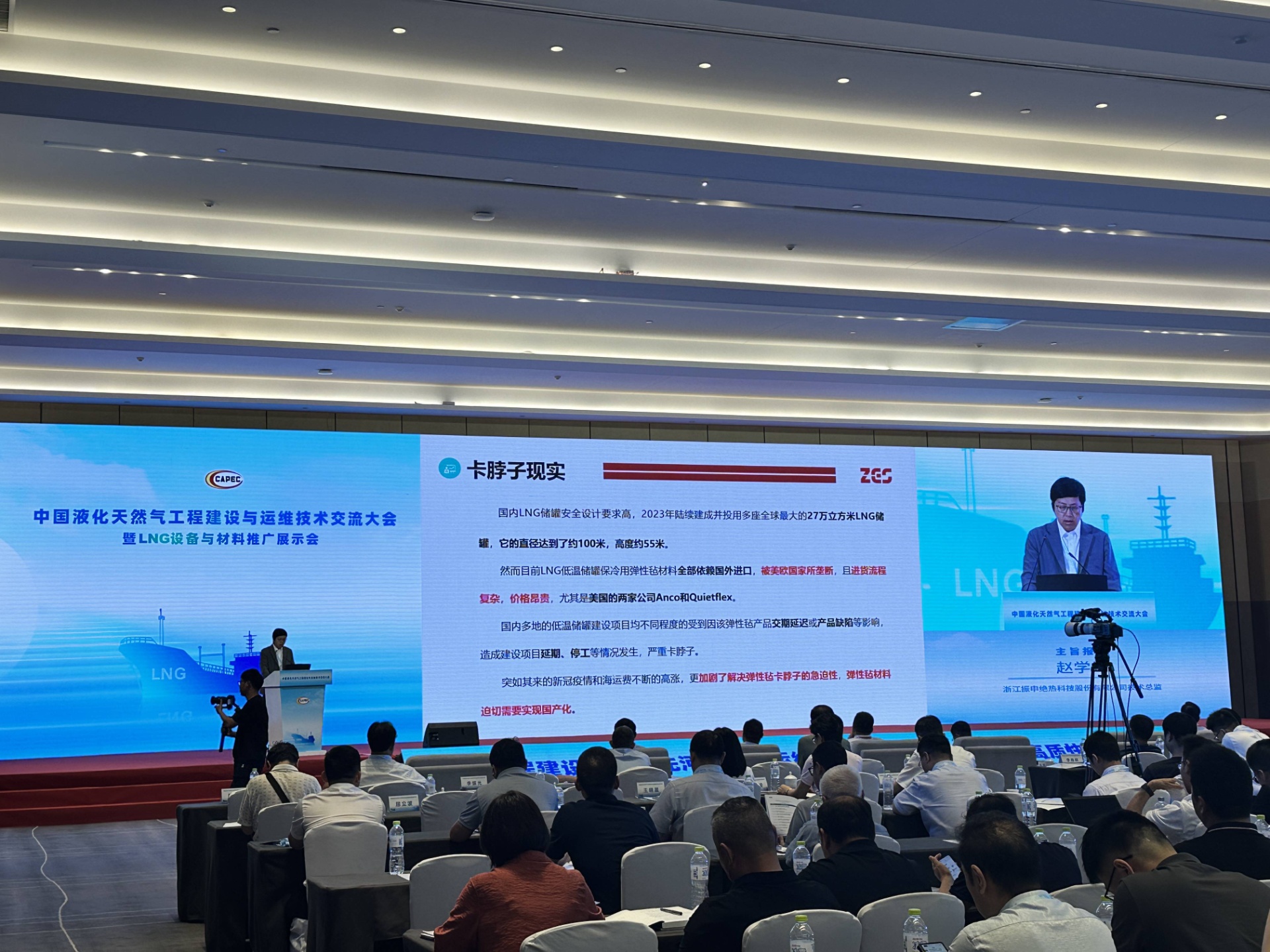 振申绝热受邀携带最新的保冷材料和凯发公司的解决方案出席此次盛会。公司技术总监赵学锋围绕振申弹性毡助力大型低温液化气储罐全保冷系统国产化为主题作精彩演讲。