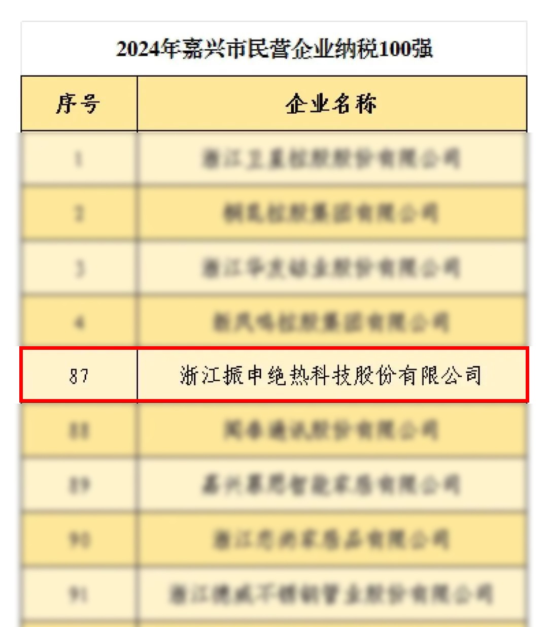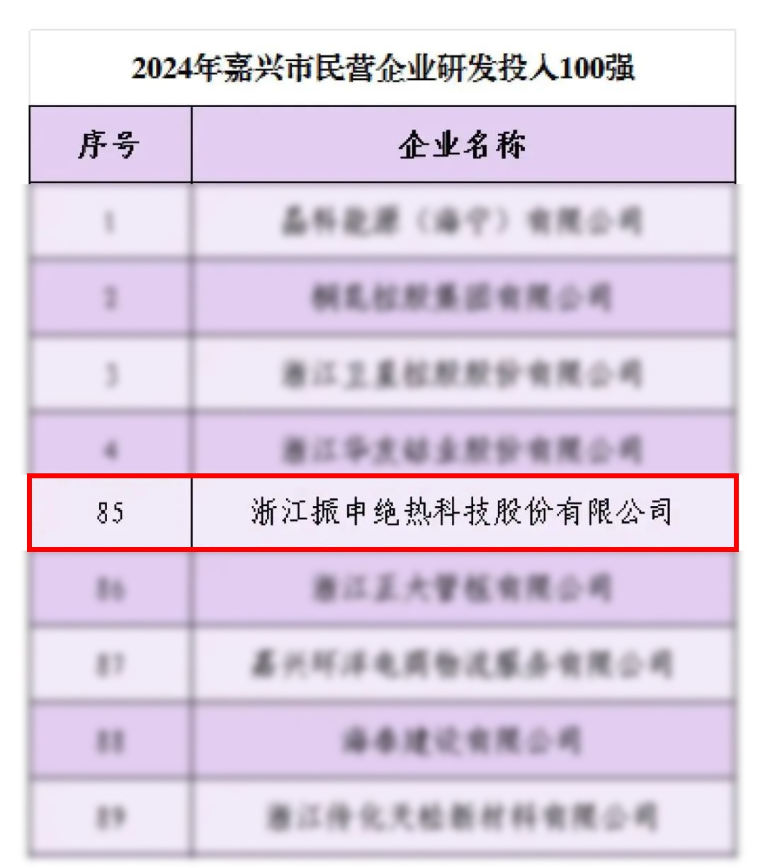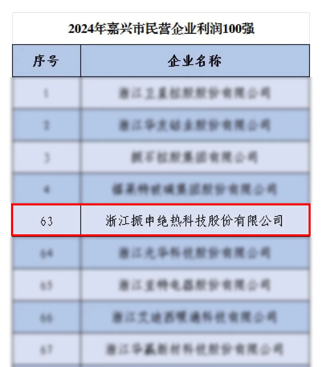 在 2024 年嘉兴市民营企业的评选中,振申绝热脱颖而出,荣登【利润 100 强】、【研发投入 100 强】、【纳税 100 强】三张榜单!这一辉煌成就,不仅是对振申绝热过往努力的高度认可,更是其未来发展的强大动力。