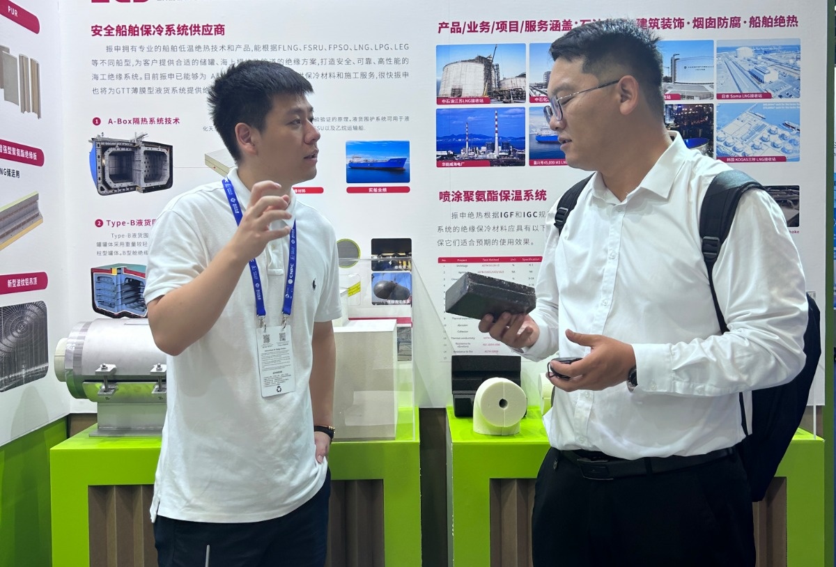 振申绝热作为行业内的知名企业,受邀参加此次盛会,并在展会上设立了专门的展位,向来自全球的参会者展示其最新的保冷材料和凯发公司的解决方案。尤其是振申 b 型舱保冷材料和低温储罐用弹性毡,吸引全球目光。