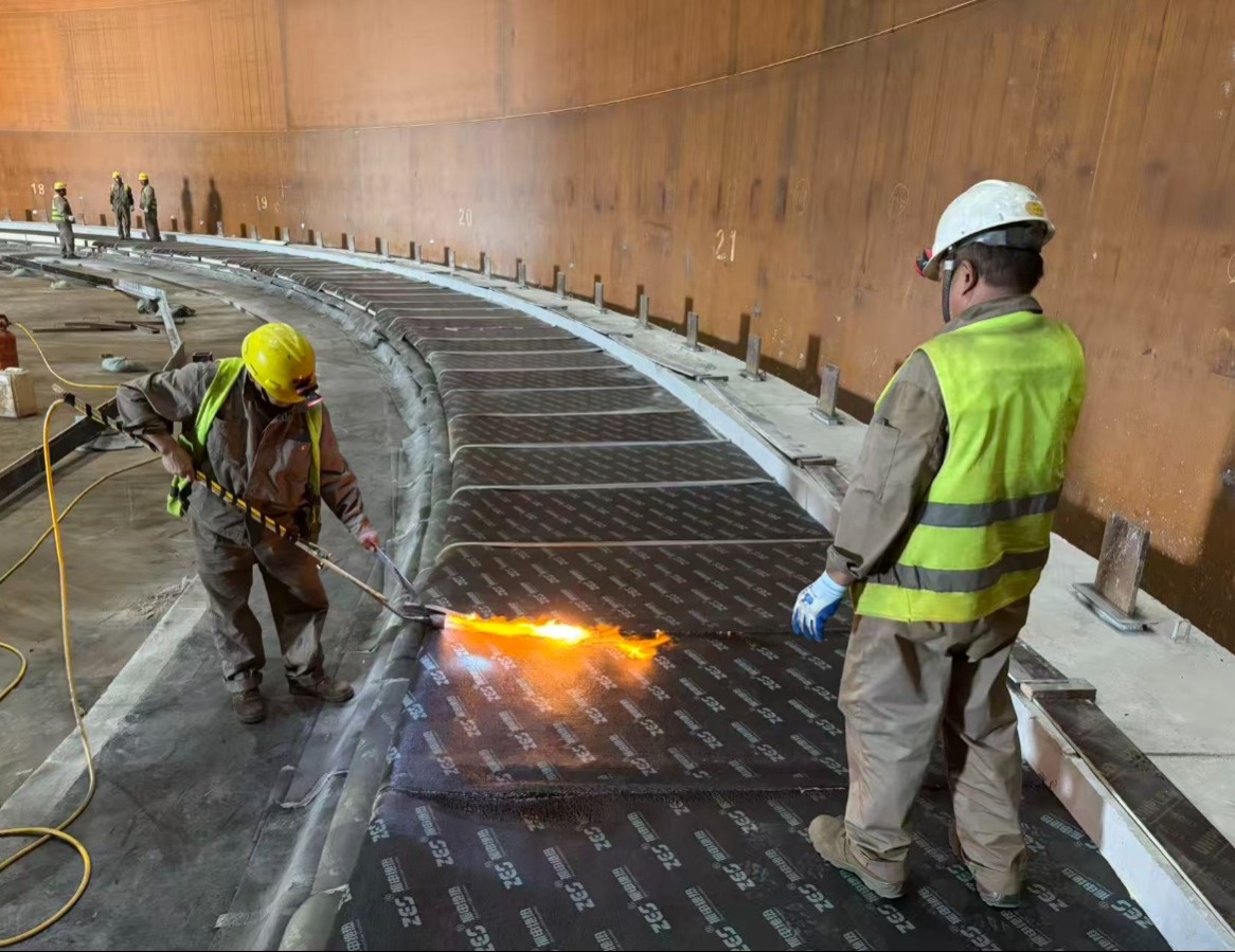 在山东中燃宝港液化烃库区项目中,振申绝热团队迎来了一场与时间赛跑的 “硬仗”——三个储罐的铝吊顶施工以及罐底罐壁罐顶保冷。作为项目升顶前的关键工序,铝吊顶施工精度要求高、交叉作业多,且需配合天辰公司的按期升顶节点,每一秒都是 “倒计时”!工期紧、任务重,却凭借硬核技术与高效协作,交出了令业主、总包及各单位一致点赞的答卷!